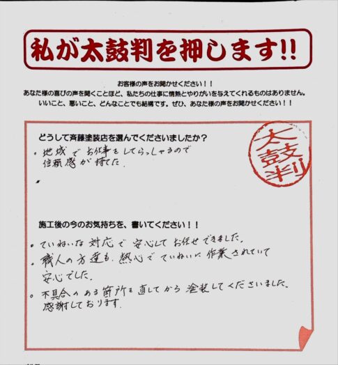 施工後のお客様の声