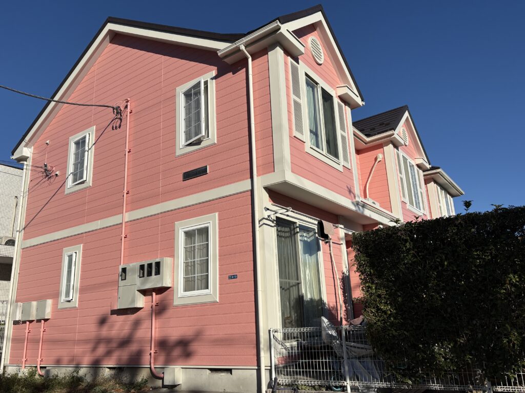サイディング壁をピンクでホワイト系のアクセントでオシャレカワイイ外壁塗装!