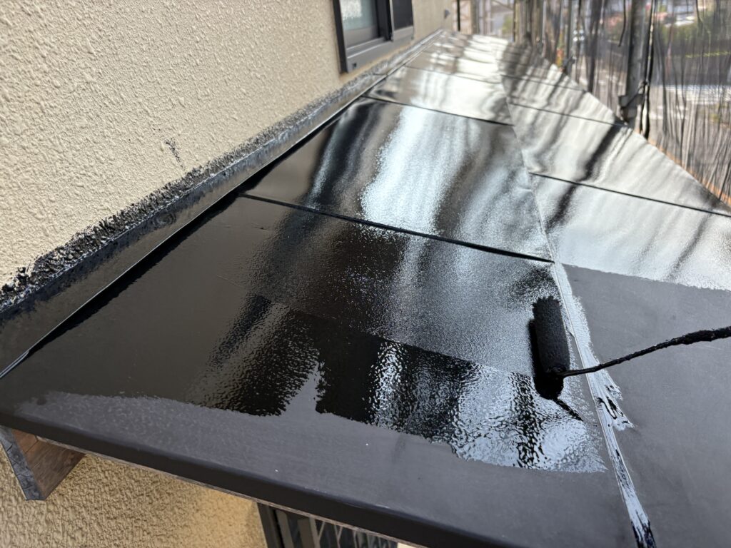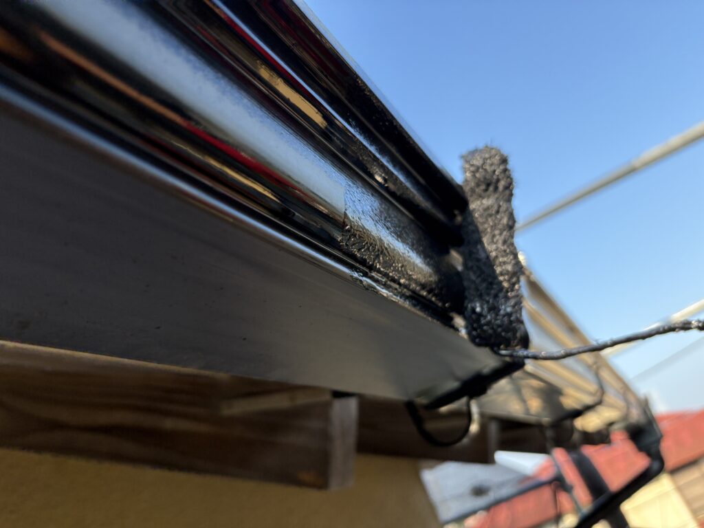 今日は付帯部をフッ素塗料中塗り塗ってます。