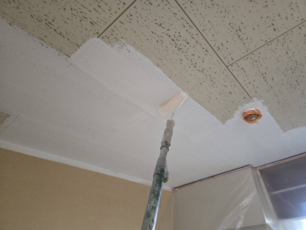 代表親方ブログ2026.03.03今日は雨なので、マンションの室内天井の下塗り塗ってます。本日はマンションの室内天井シミ止めシーラー塗ってます。塗装中中塗り施工中賃貸マンションの室内天井ヤニやシミがあるのですシミ止めシーラーを塗りました。集合住宅で臭いが気になるので水性塗料を使いました。水性塗料だとヤニやシミが出てしまうのでヤニ止めシーラーを塗って中一日おいて上塗り塗料を塗ります。本日の塗装作業完了代表親方 齊藤昌広塗替えをお考えの方は、ぜひ塗装職人専門店の斉藤塗装店をお尋ねくださいね。無料お見積はこちら